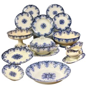 • Porcelain Dinner Service of 43 Pieces with Blue Floral and Bird Motifs