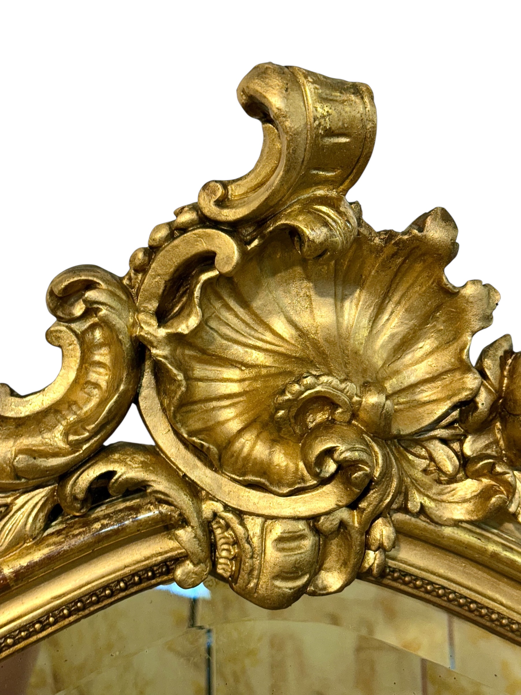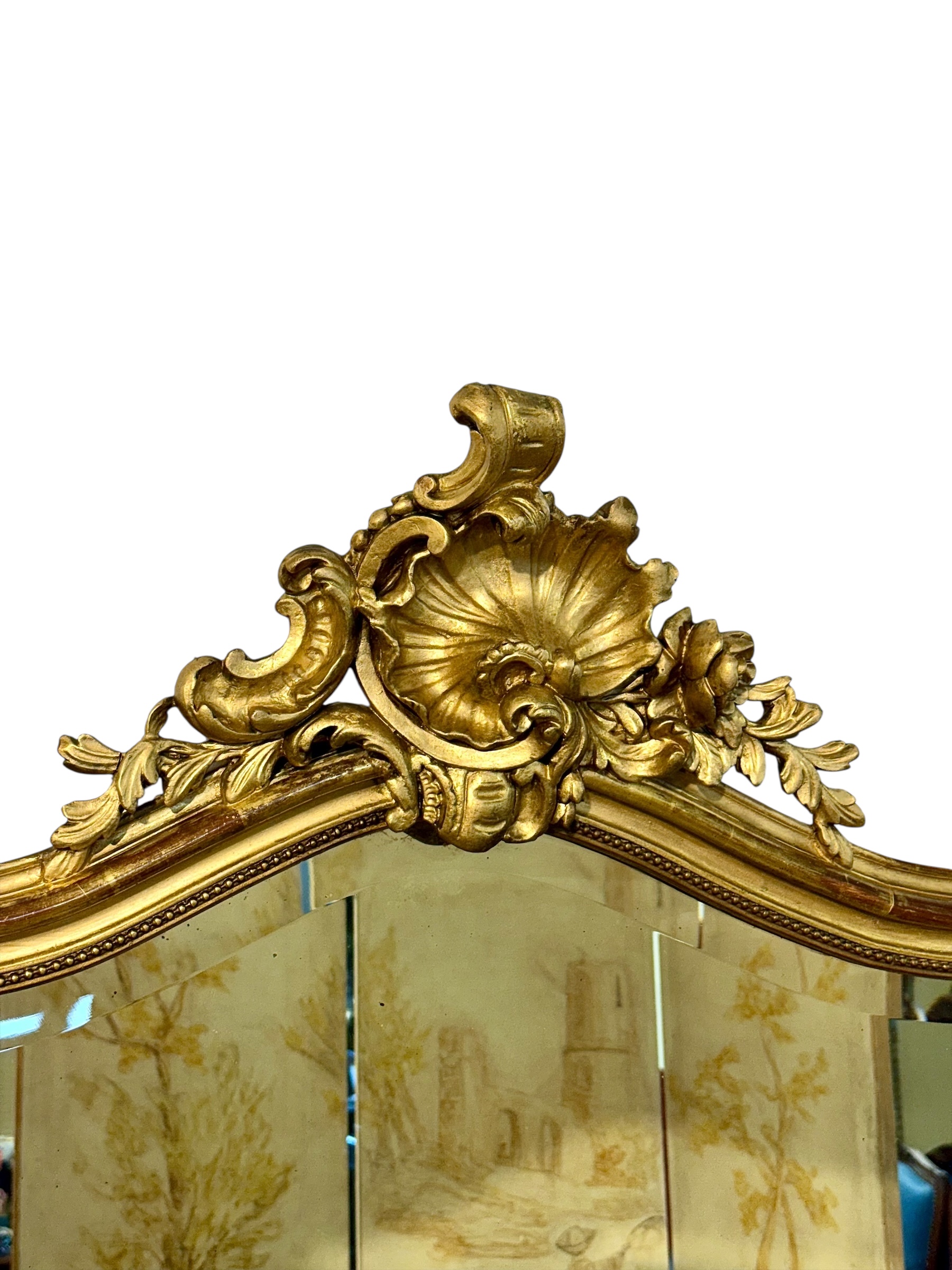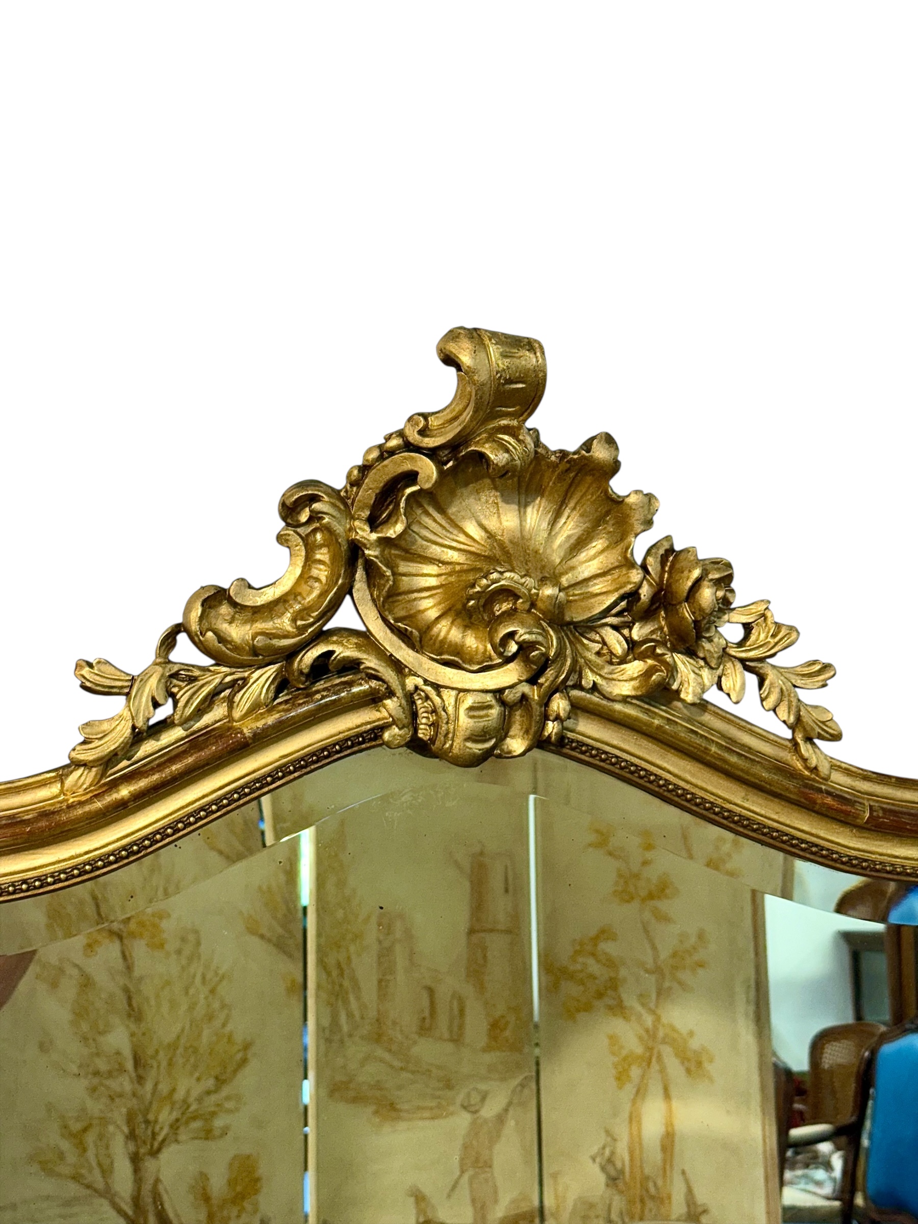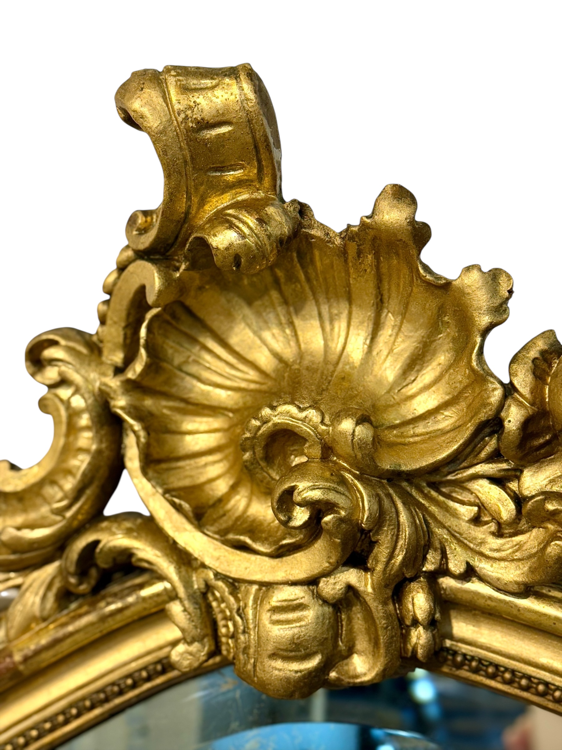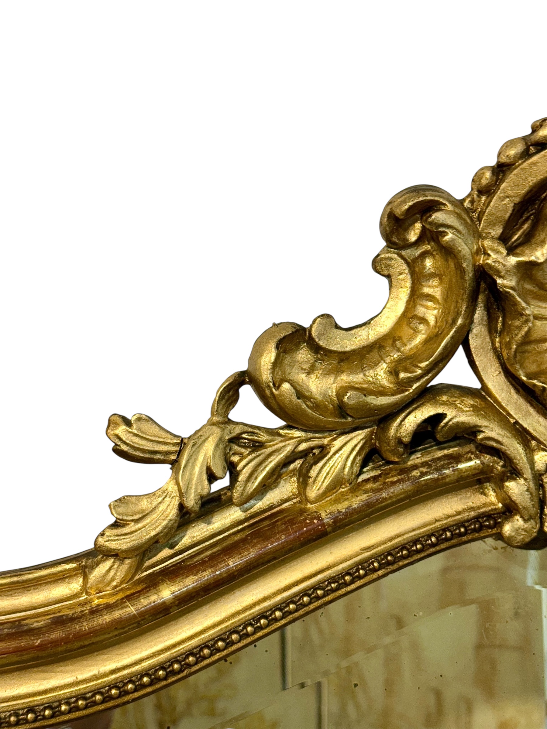 Louis XV Style Gilt Overmantel Mirror with Bevelled Glass Plate