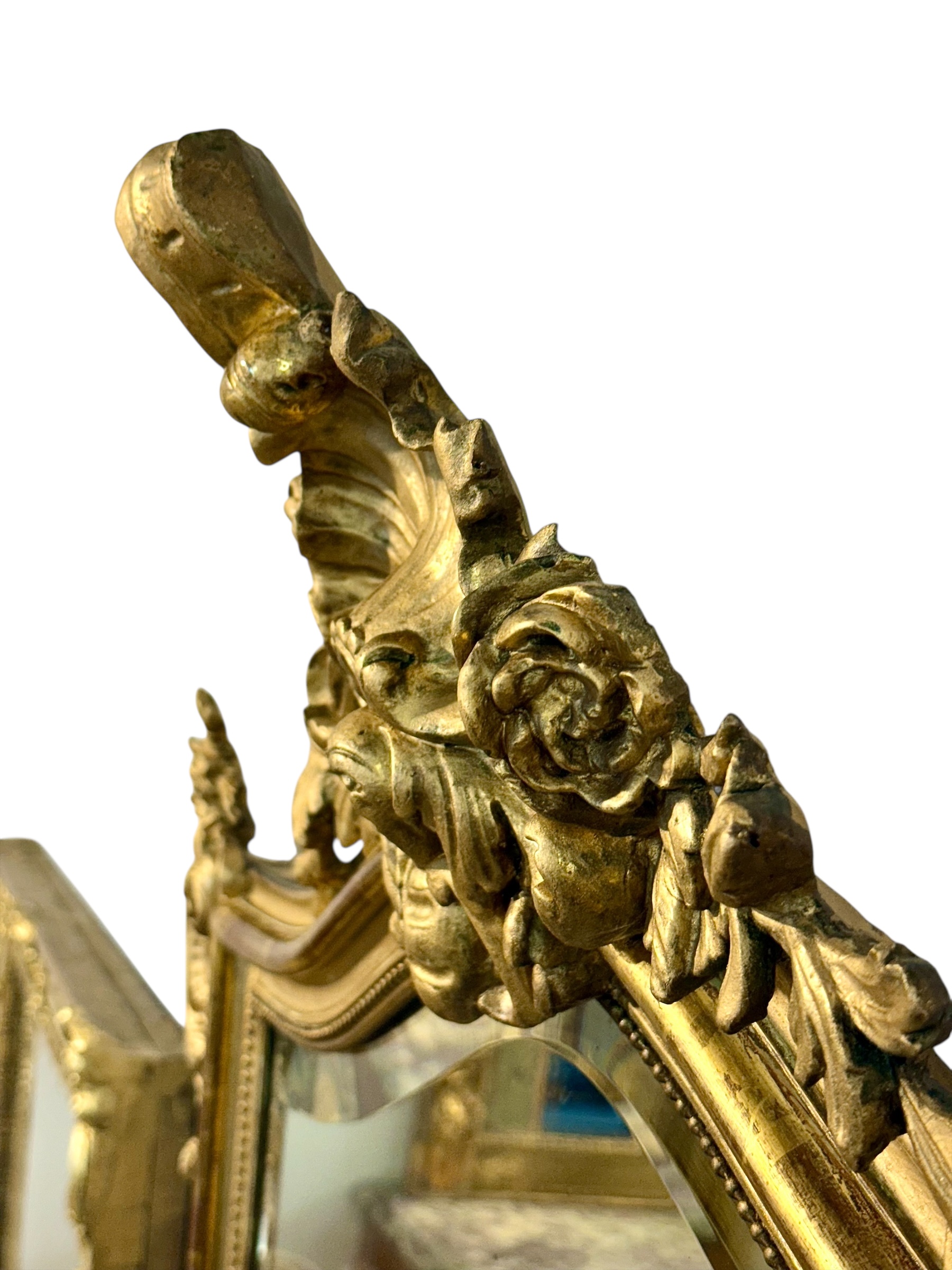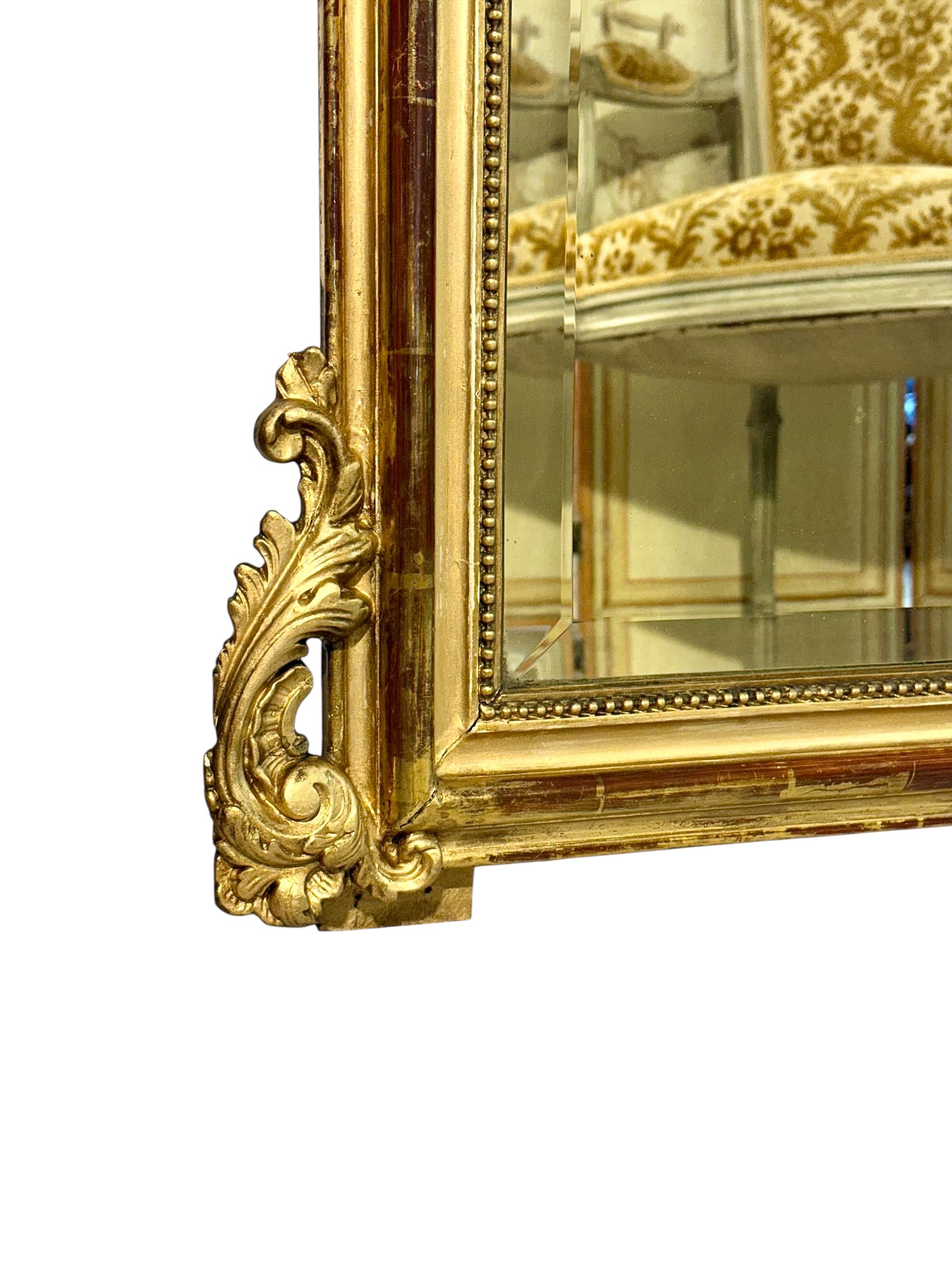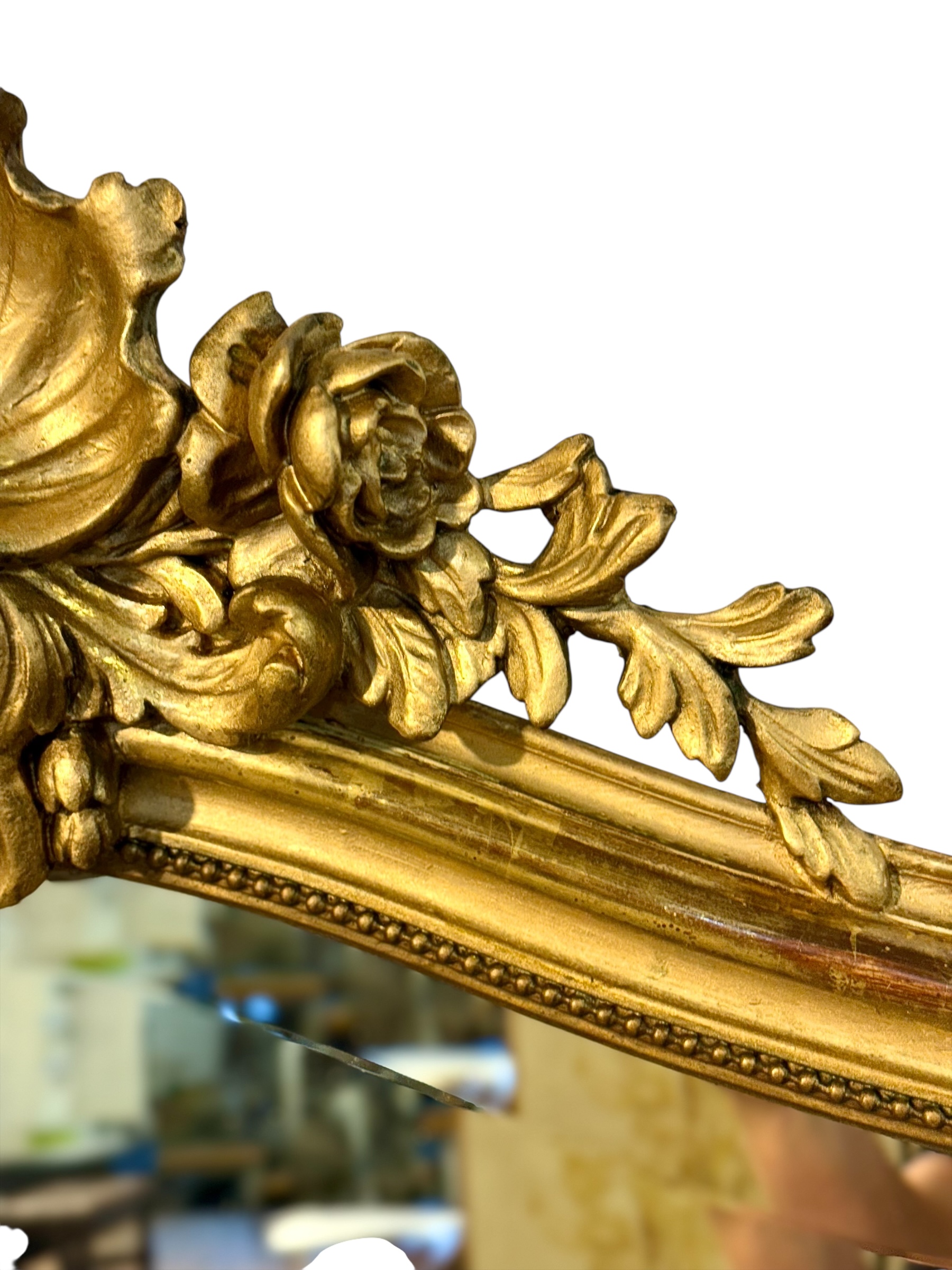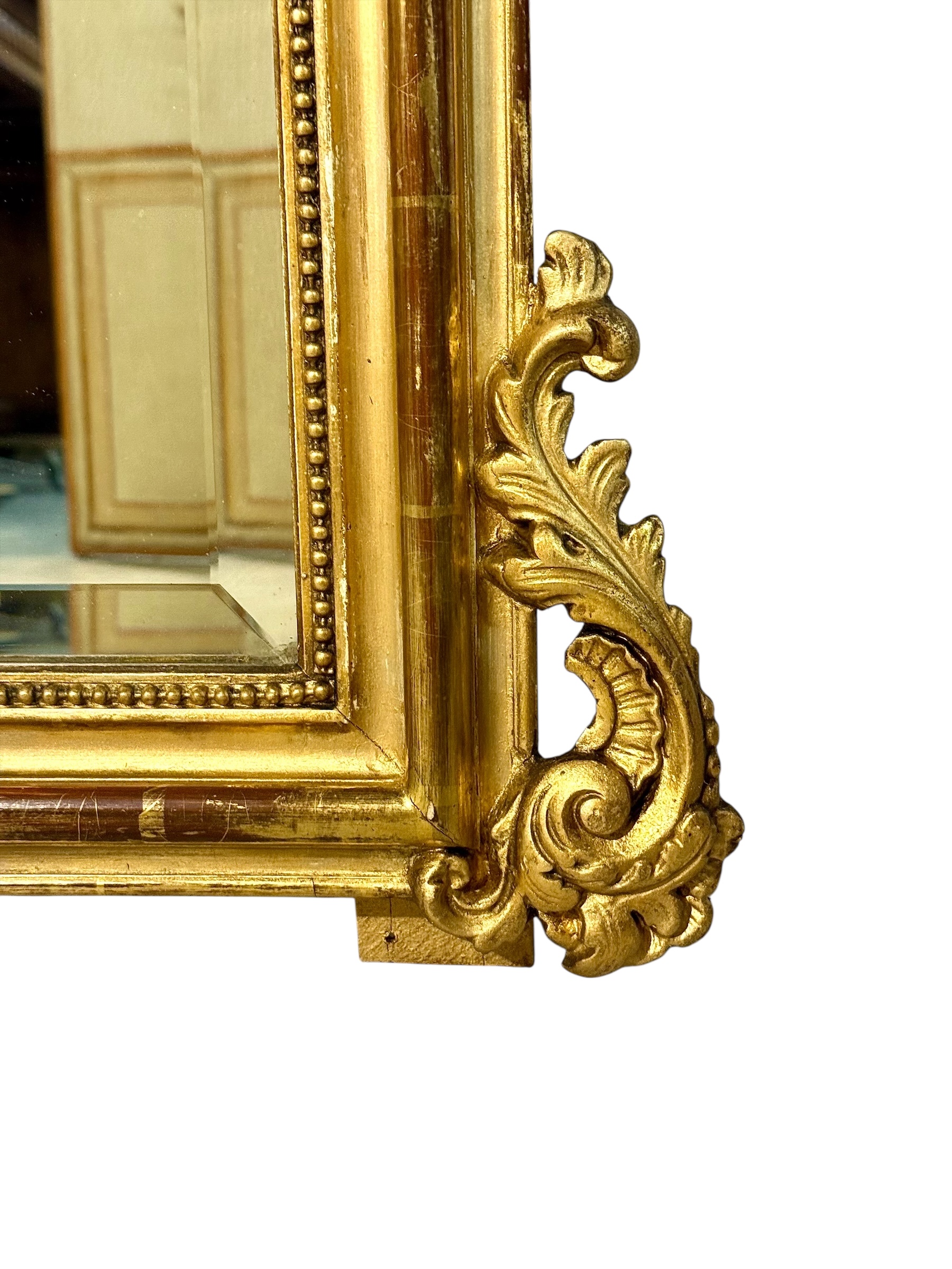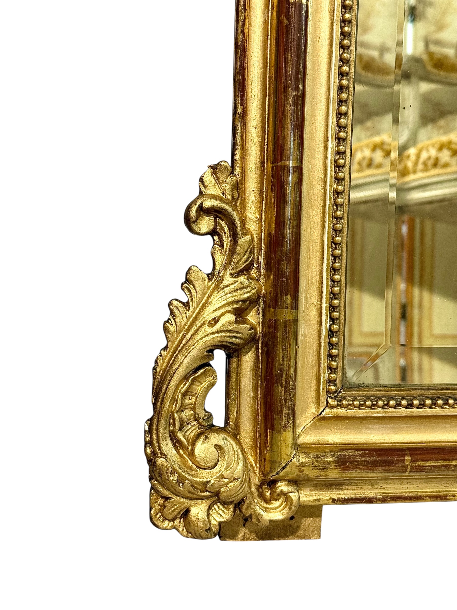 Louis XV Style Gilt Overmantel Mirror with Bevelled Glass Plate